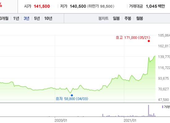 최근 원자재 값이 크게 오르면서 큰 폭으로 뛰었습니다.