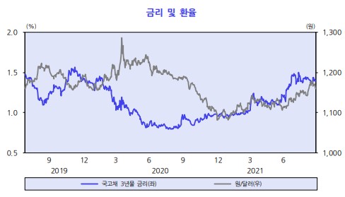 8월에 국고채 3년이 1.40으로 7월 1.42보다 낮아졌습니다. 8월에 기준금리가 인상하였습니다. 이미 반영인지 변동이 없었습니다.