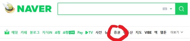 설정을 위해서는 네이버에서 증권 탭에 들어갑니다. 저는 웨일에서 해 보았어요.