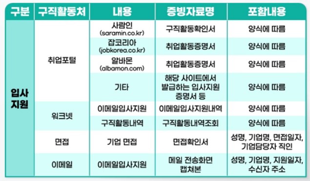 구직활동 증빙자료